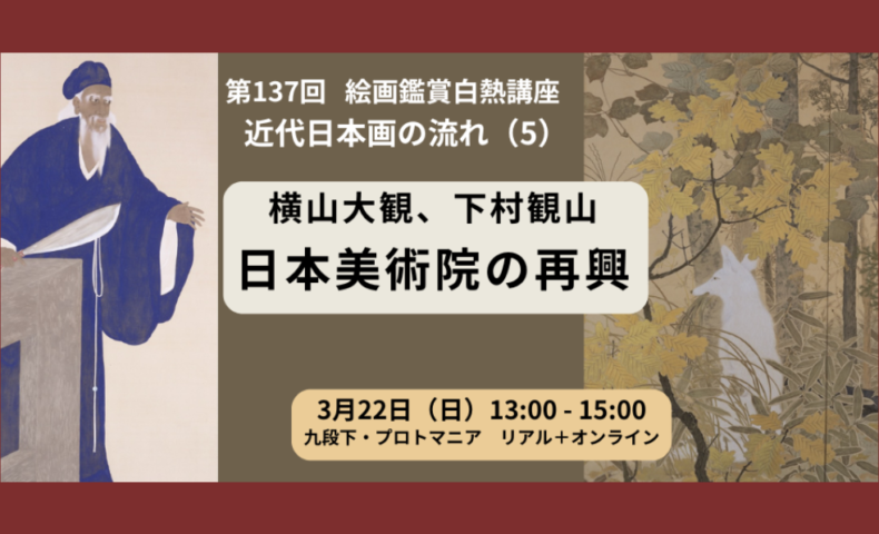 ちなみに、この講座の直前、3月17日から国立近代美術館で《下村観山》の大回顧展が始まりますので、その予習にもお役立てください。